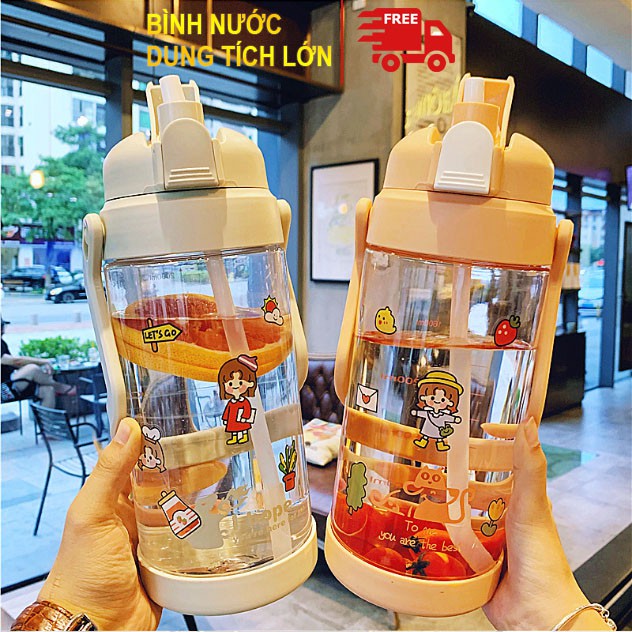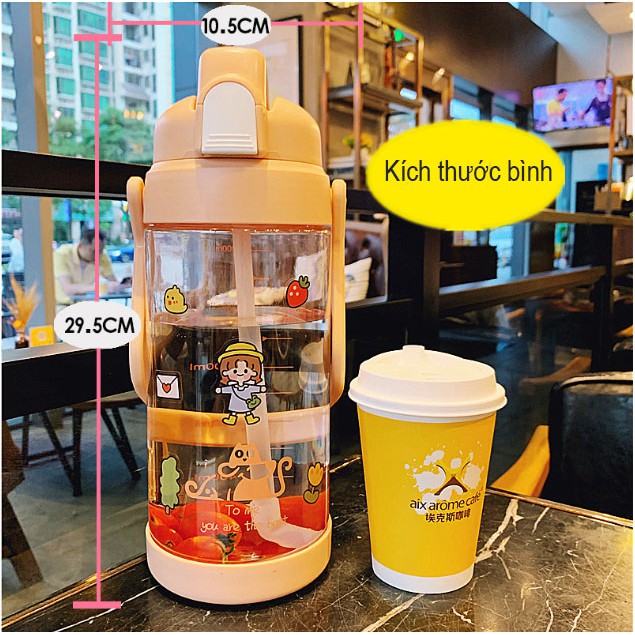 [ HÀNG HOT 2021] Bình Nước 2L Có Vạch Kẻ Chia Theo ML , Ống Hút Tiện Lợi , Bình Nhựa An Toàn Cho Sức KhỏeMẫu Bình Nước 2 Lít Cực Hot Năm 2021 các bạn ơi !!!!! TẶNG KÈM 4 Tấm Dán STICKER Cực Dễ Thương