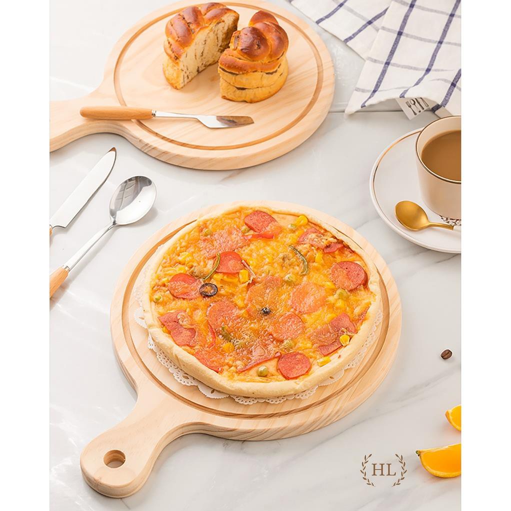 Đế chuyên dụng đựng pizza , đồ nướng bbq, bánh ngọt có tay cầm sử dụng trong tiệm bánh, nhà hàng, studio chụp ảnhChất liệu: Gỗ - Gỗ Tre tự nhiên