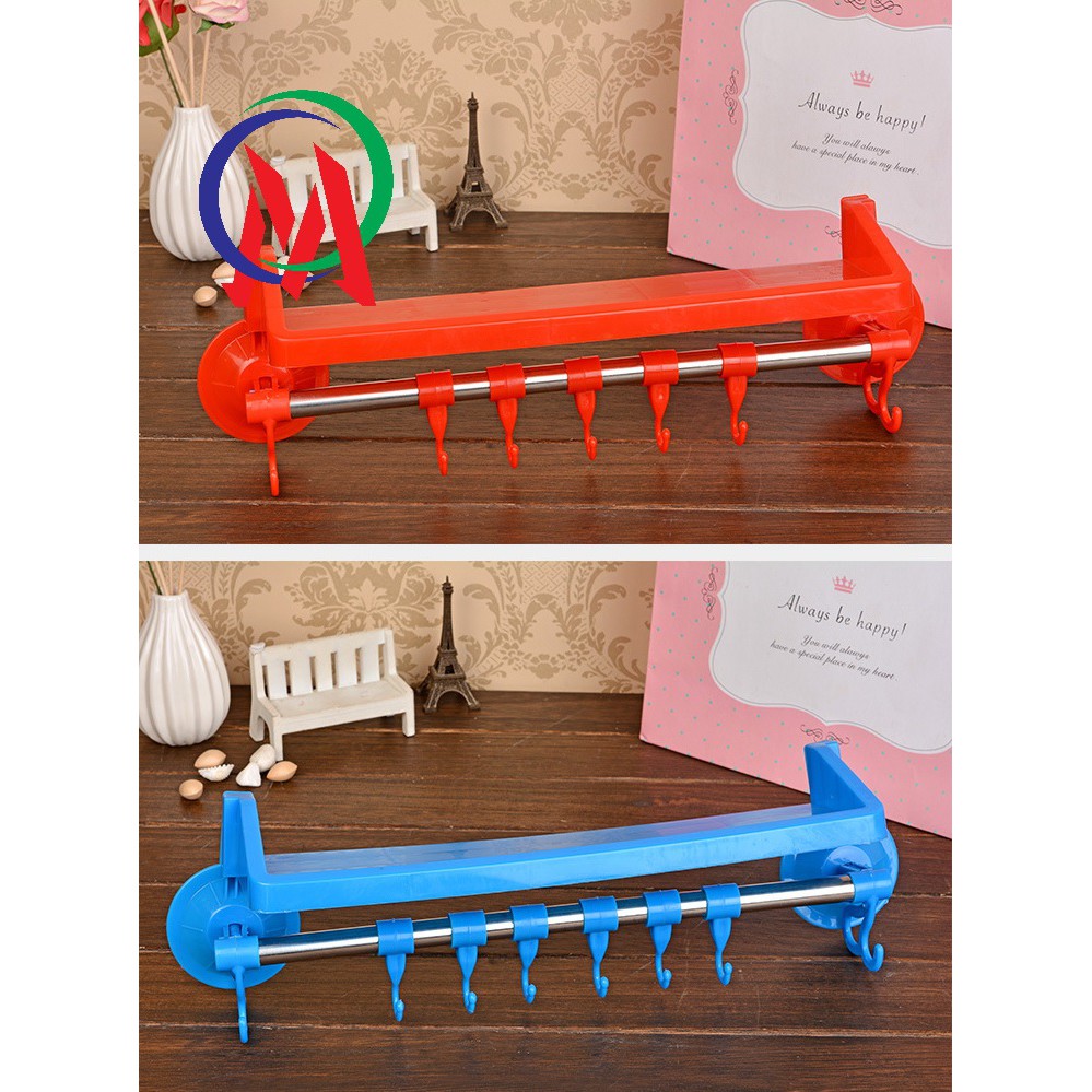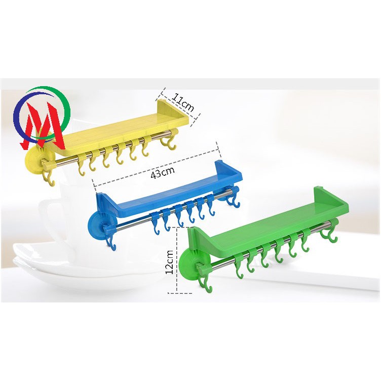 Bộ sản phẩm tích hợp kệ để đồ và thanh treo có móc phía dưới, làm tăng diện tích chứa đồ.