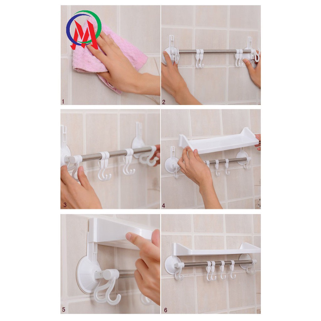 Hít chân không chỉ có tác dụng bám dính tốt trên các bề mặt trơn phẳng như tường gạch, mặt kiếng.Vệ sinh sạch sẽ phần tường cần gắn kệ và nút hít chân không của kệ.