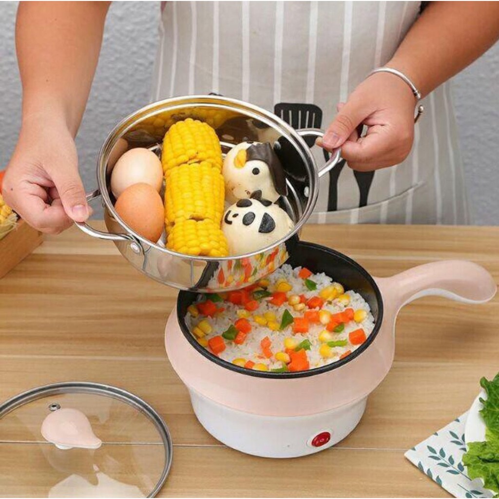 HÀNG HOT Nồi lẩu điện Mini đa năng 2 tầng,Tặng Kèm Khay Hấp có thể Chiên, Xào, Nấu ăn, nấu cơm, nấu lẩu mini