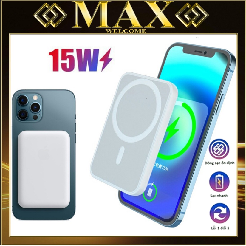 [HÀNG HOT] Sạc Không Dây Từ Tính Kiêm Sạc Dự Phòng 5W/15W - Hỗ Trợ Nhiều Thiết Bị -Cực Tiện Lợi, Có bảo hành/Max