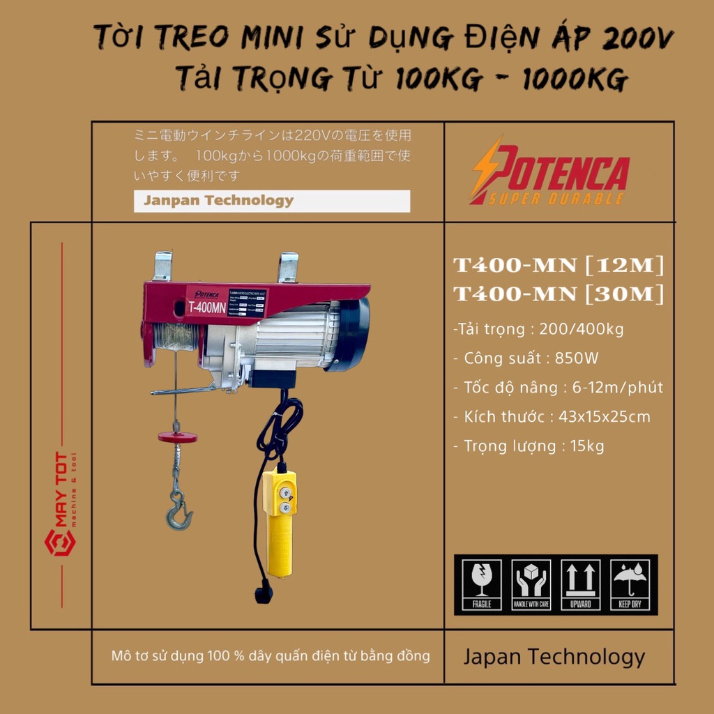 Hàng hot sẵn sll- giá rẻ! Tời Điện T400MN ( PA400 ) lõi đồngloại 12M và 30M BH 6 tháng !