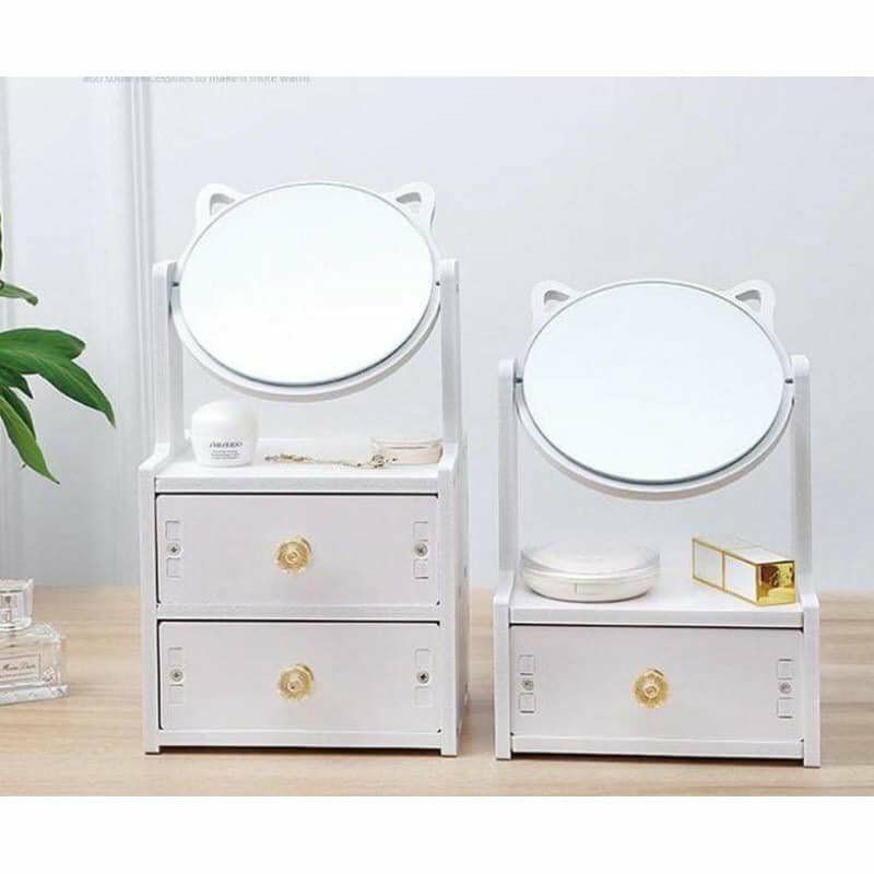 Kệ mỹ phẩm gỗ nhựa kèm gương tai mèovới các đặc tính như sau: