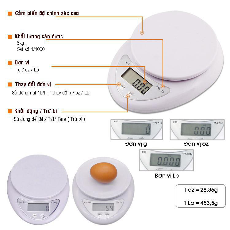Giới thiệu (hàng hót)Cân Tiểu Ly 5 Kg Electronic Kitchen Scale – cân thực phẩm gia vị nhà bếp tiện dụng