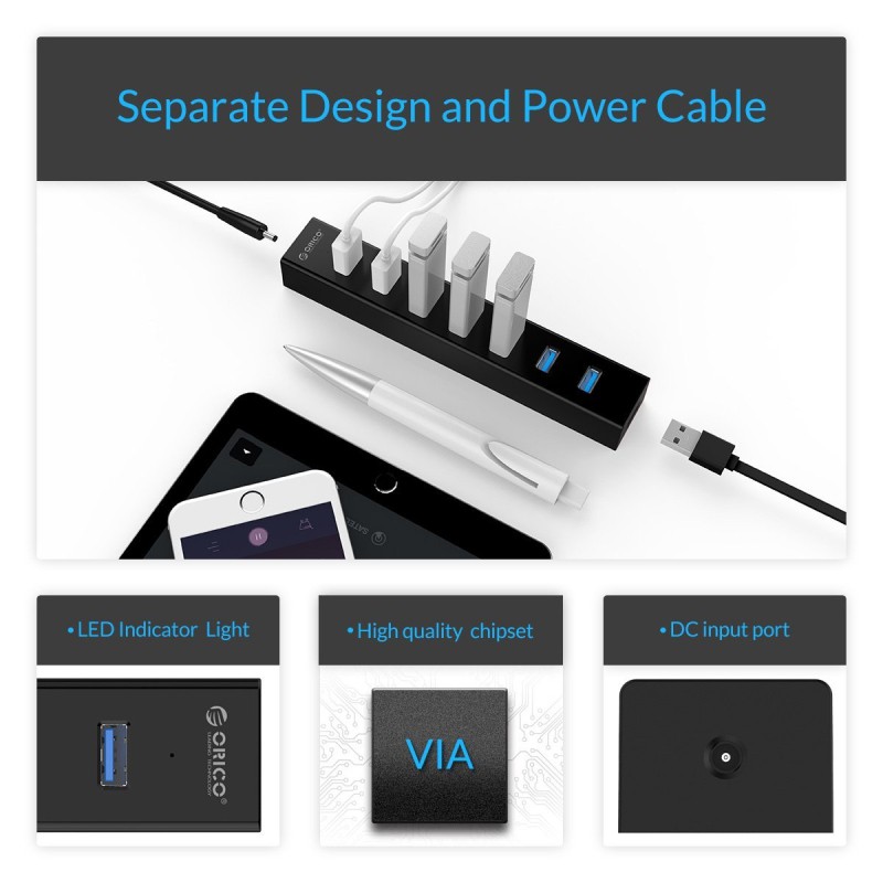 Giới thiệu [Chính Hãng] Hub chia 7 cổng USB 3.0 Orico H7013-U3 + Kèm củ nguồn