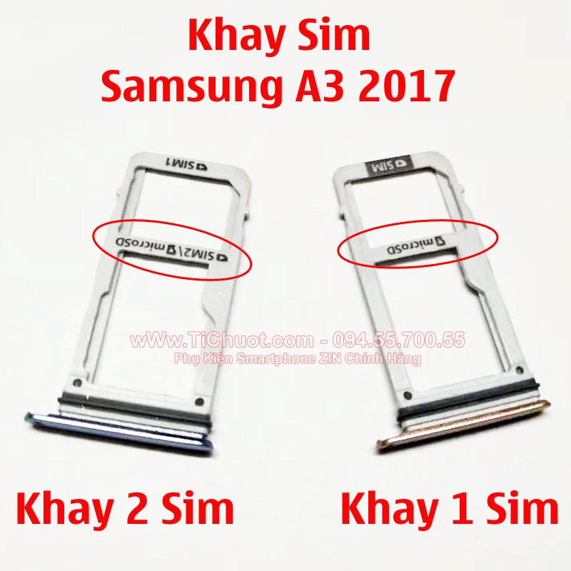 ⛔ Lưu ý: Khay SIM của A3 2017 khác kích thước A5 2017/ A7 2017 nên không sử dụng chung được , dù bên ngoài nhìn giống nhau.