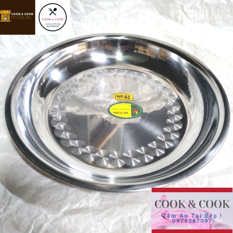 [Chính Hãng] khay tròn inox, mâm tròn inox đủ size 20, 22, 24, 26, 28, 30 cm đựng hoa quả, thực phẩm... Vietcook