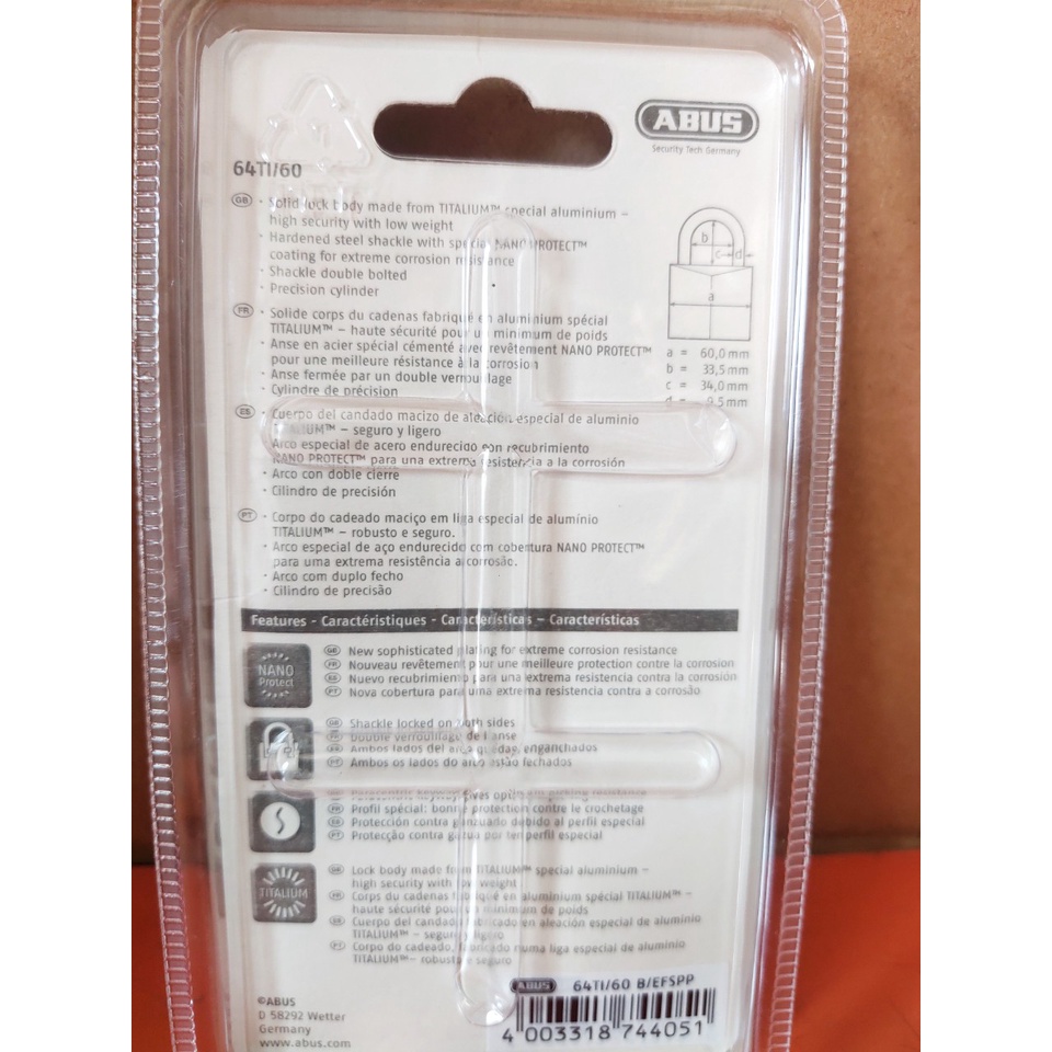 [Chính hãng] Khoá Abus Titanium 64ti/60 chính hãng