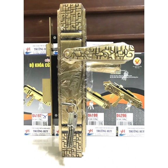 - Khóa cửa bằng Đồng Việt Tiệp 04197 là sản phẩm khóa cửa đi có thiết kế màu đồng rêu giả cổ tinh tế, thích hợp sử dụng làm cửa đi bằng GỖ trong nhà, cửa 2 hoặc 4 cánh và phù hợp nhất với chất liệu gỗ.- Tay ốp khóa, then khóa được là bằng chất liệu đồng vàng (đồng thau) tinh tế, còn tất cả các chi tiết trong thân khóa thì được cấu thành bằng tôn thép mạ kẽm theo tiêu chuẩn quốc tế và phủ một lớp sơn tĩnh điện. Điều này giúp sản phẩm có độ bền cao, chống lại được sự tác động của môi trường và hạn chế gỉ sét.