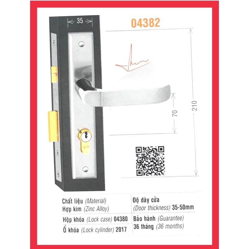 [chính hãng] khoá cửa nhôm hệ 700, sắt khung đố 3x6cm Việt Tiệp 04382 - Bảo hành 3 năm