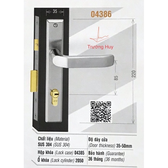 * Khóa tay gạt 04386 có vỏ làm từ inox sus 304 chịu được thời tiết ngoài trời.Lõi khóa làm từ đồng cao cấp chống dò, phá khoá.
