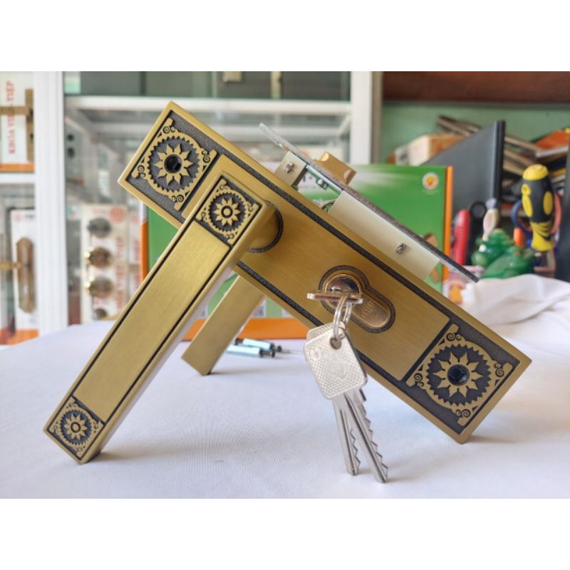 - Sản phẩm : khoá cửa phòng cao cấp thích hợp cửa 1 hoặc 2 cánh với hoa vân cổ kính sang trọng.