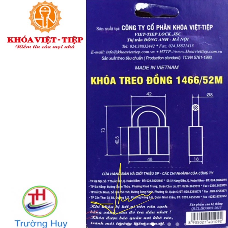 Nhà cửa & Đời sống > Bảo hộ gia đình > Khóa, ổ khóa || [chính hãng] Khoá treo đồng Việt Tiệp 1466/52MCòn hàng