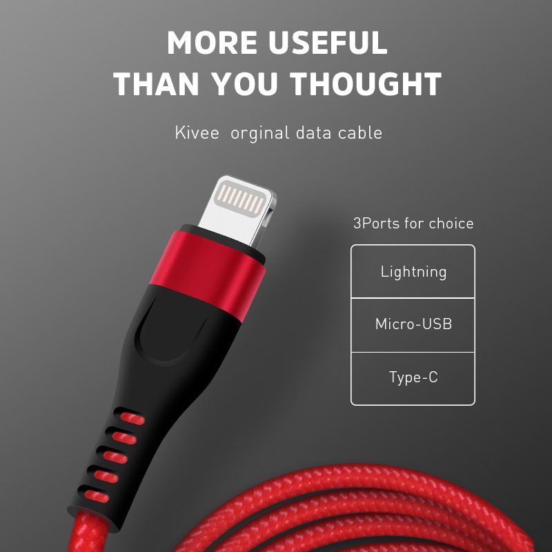 [ Chính Hãng Kivee ] Dây Cáp Sạc Nhanh Micro Usb / Type-C Dài 1m Cho Iphone Android Phone CT302