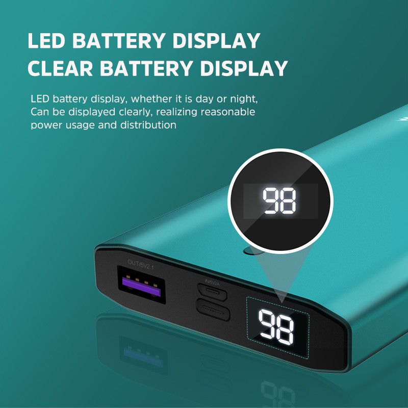 - Dung lượng pin 10000 mAh màn hình hiển thị nguồn điện di động sạc nhanh- Đầu vào Micro USB: 5.0V / 2.0A 9V / 2A hoặc Type-C: 5.0V / 2.0A 9V / 2A
