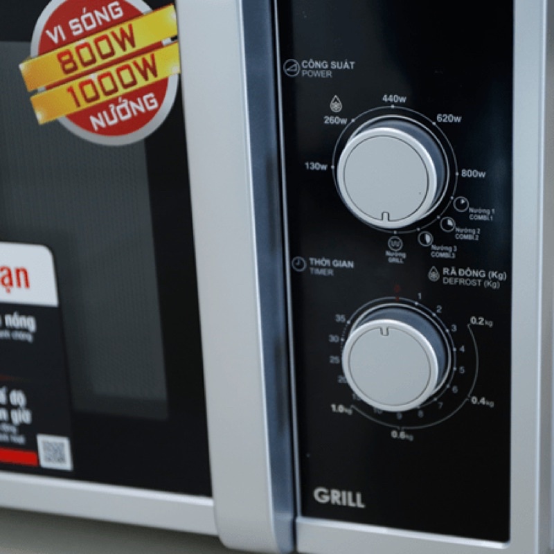 Công suất vi sóng 800W, nướng 1000W, đáp ứng việc hâm nóng và nướng một cách nhanh chóng. Tiết kiệm được điện năng tiêu thụ, giảm chi phí sinh hoạt cho gia đình. Bảng điều khiển hỗ trợ ngôn ngữ Tiếng Anh và Tiếng Việt giúp bạn dễ dàng thao tác trong suốt quá trình sử dụng. Ngoài ra lò còn linh hoạt trong việc rã đông theo trọng lượng hoặc theo thời gian, tối ưu hóa nhu cầu rã đông của người dùng.