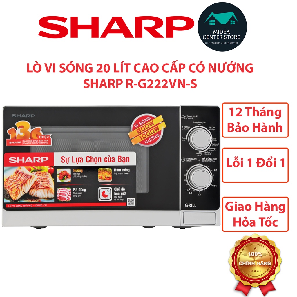 [Chính hãng] Lò vi sóng Sharp có nướng 20lít R-G222VN-S, lỗi 1 đổi 1, bảo hành 12 tháng toàn quốc