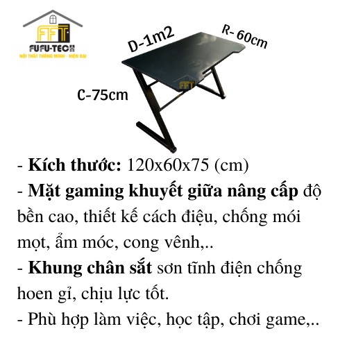 Giới thiệu [Hàng Loại 1] Bàn Chữ Z Gaming, làm việc, học tập FUFUTECH Chân Sắt Sơn Tĩnh Điện Mặt Gỗ Phũ Melamine 120x60 Cm
