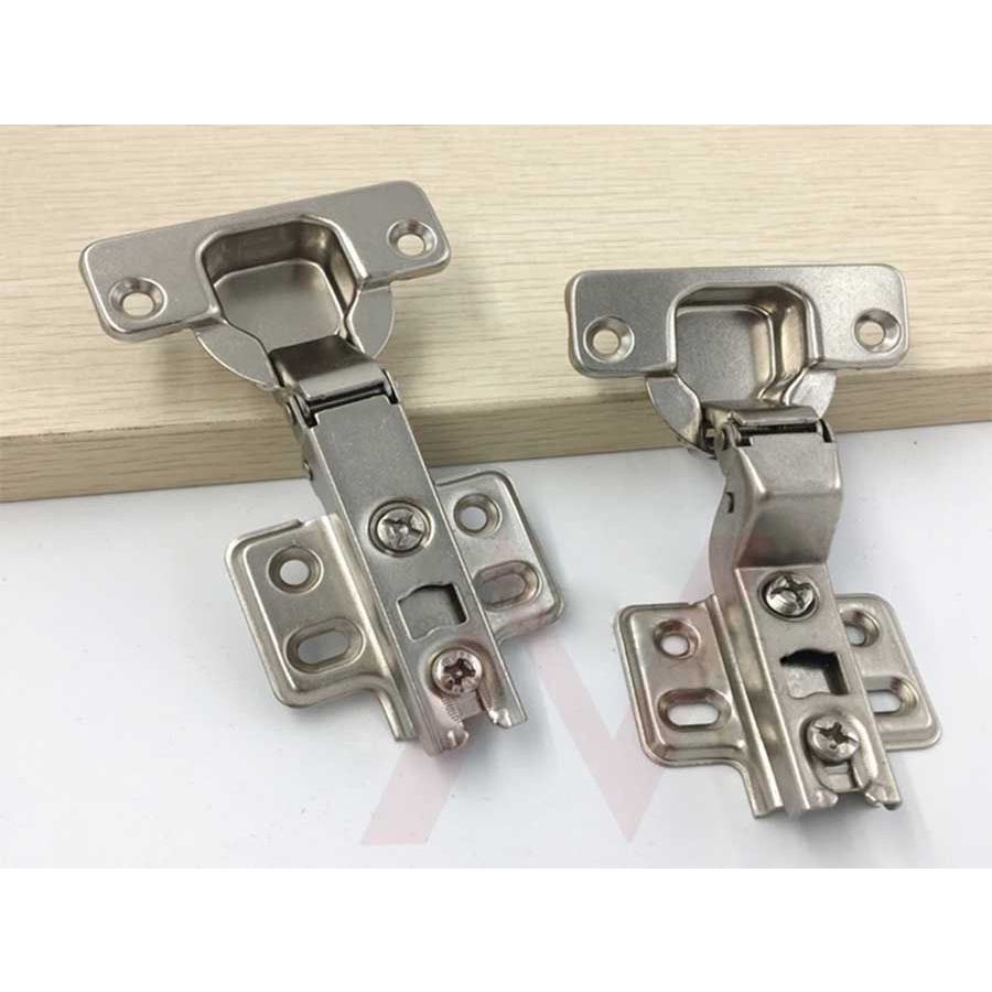 + Bản lề bật cong: Khi lắp ráp cánh tủ sẽ che một nửa độ dày của cạnh tủ