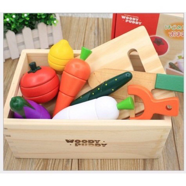 Bộ đồ chơi cắt ghép rau củ quả bằng gỗ với nhiều màu sắc ngộ nghĩnh đáng yêu giúp bé vừa học vừa chơi,