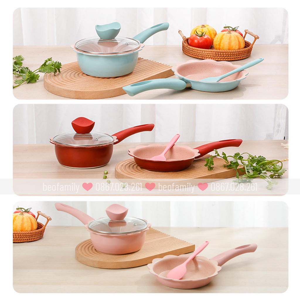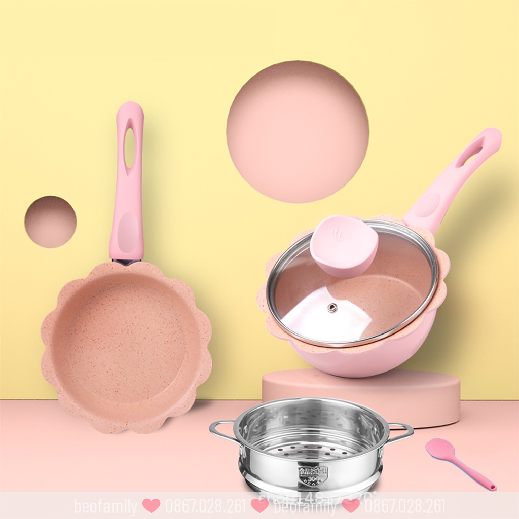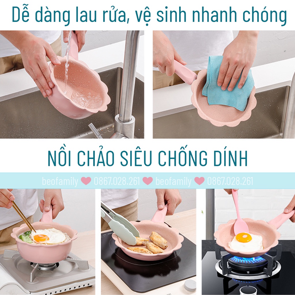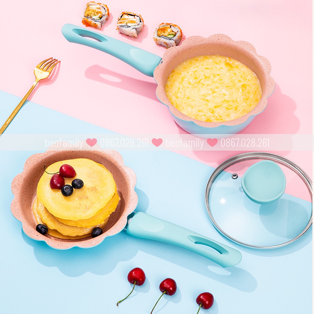 [Hàng loại 1] Bộ chảo đá chống dính cao cấp hình bông hoa, quánh chống dính nấu đồ ăn dặm cho bé