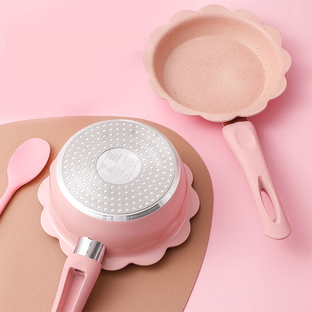 (FREESHIP) Bộ nồi chảo đá chống dính hình bông hoa nấu ăn cho bé, kích thước 16cm, màu hồng, xanh xinh xắn