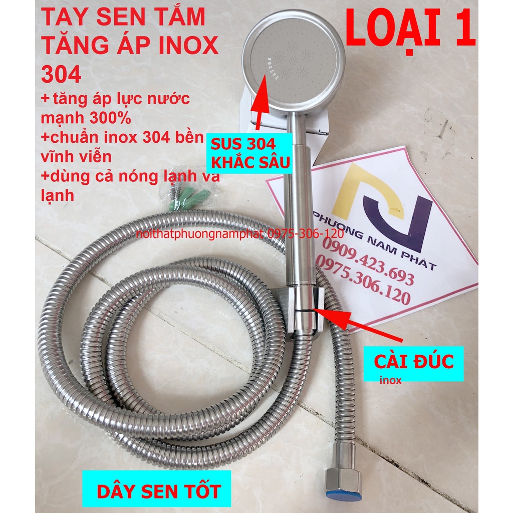 [HÀNG LOẠI 1] BỘ Tay Sen Tắm Tăng Áp bằng 100% INOX 304 TS20 và dây inox 304 TS nước mạnh độ bền tốt