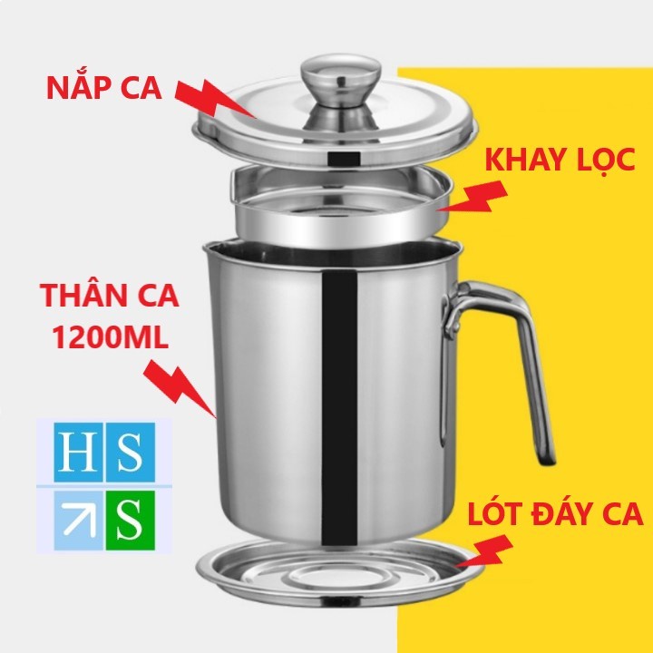 (Hàng loại 1) CA LỌC DẦU ăn INOX 304 (1200ml ) lưới lọc cặn tiện lợi hàng cao cấp dầy dặn không gỉ sét - HS Shop Thủ Đức