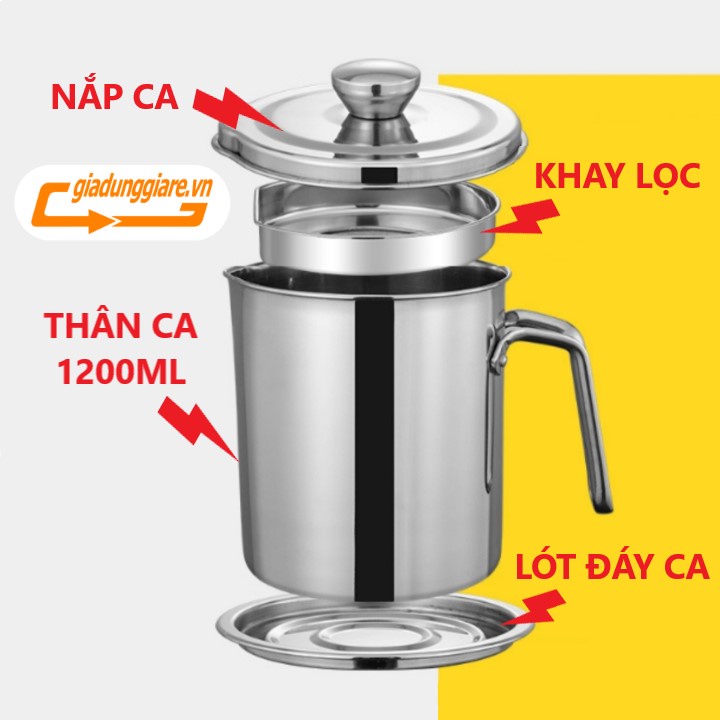 (Hàng loại 1) CA LỌC DẦU ăn INOX 304 (1200ml ) có lưới lọc cặn tiện lợi hàng cao cấp dầy dặn không gỉ sét