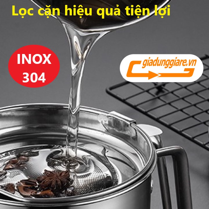Giới thiệu (Hàng loại 1) CA LỌC DẦU ăn INOX 304 (1200ml ) có lưới lọc cặn tiện lợi hàng cao cấp dầy dặn không gỉ sét