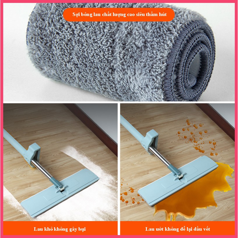 (Hàng Loại 1) Chổi Lau Nhà Thông Minh Bàn Lau Phẳng Tự Vắt Vệ Sinh Nhà Cửa Với Đầu Xoay 360 Độ Tiện Dụng