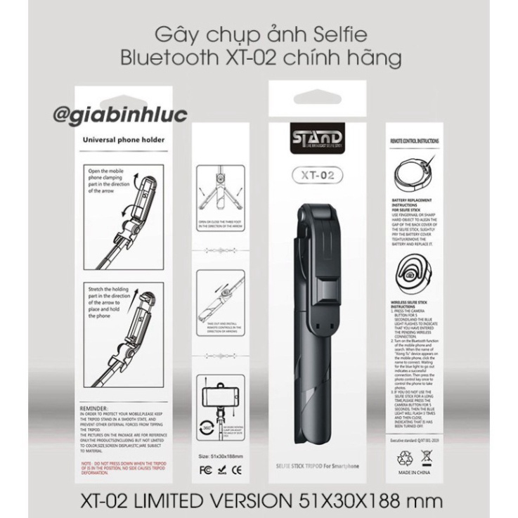 - Gậy tự sướng 3 chân Bluetooth XT02 là một sản phẩm “lai” giữa gậy tự sướng với chân chụp ảnh (tripod). Thiết kế Tripod 3 chân gọn gàng, chắc chắn, bạn không cần đến phó nháy vẫn có được 1 bức ảnh đẹp từ mọi góc độ. Với chiếc gậy tự sướng Bluetooth này, bạn thoải mái chụp cho mình những bức ảnh đẹp nhất.