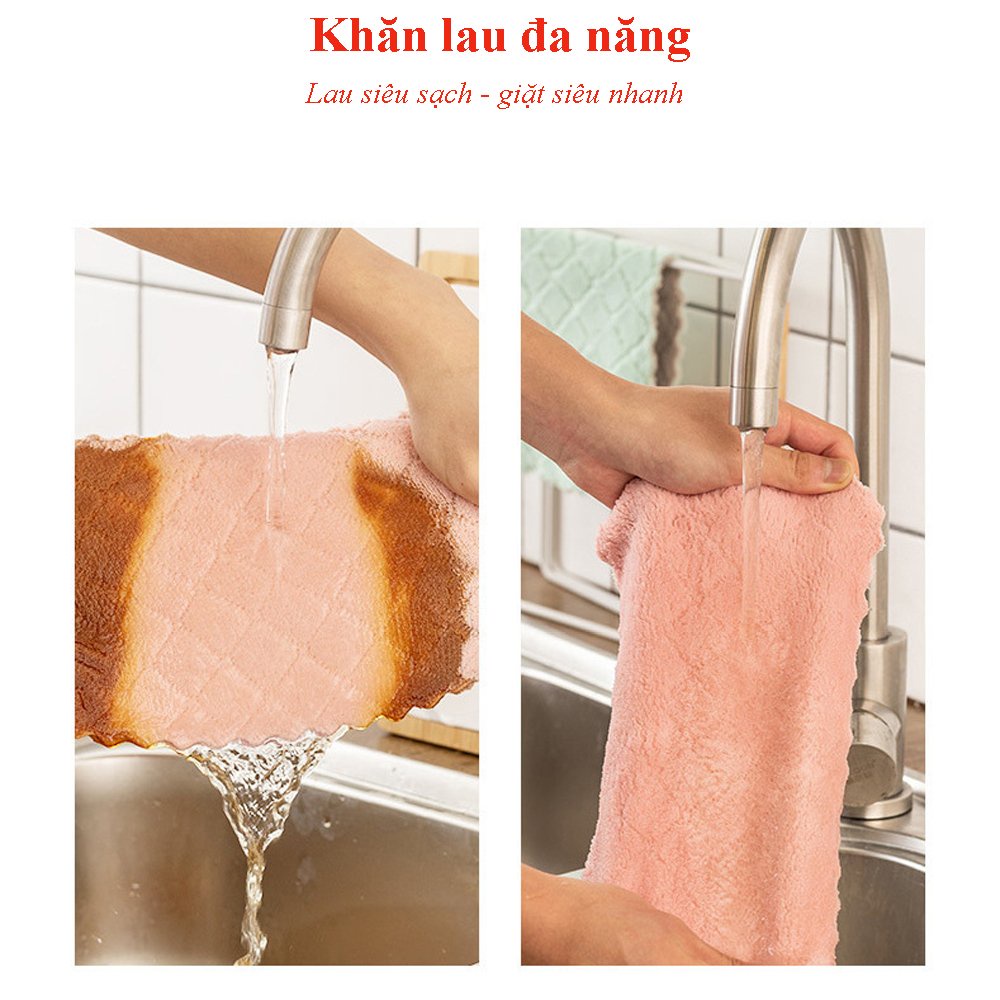 - Khăn lau bếp siêu thấm nước, siêu sạch, có khả năng gom giữ bụi bẩn trong kẽ vải và thấm nước tốt.