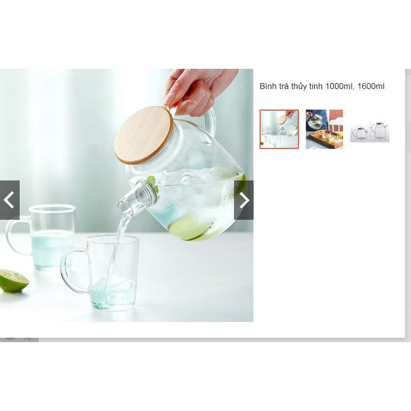 📋 Bình trà thủy tinh dung tích 1000ml (Cao 12cm) và 1600ml (Cao 17.5cm).Mẫu sản phẩm thủy tinh chịu nhiệt cao, thiết kế nắp tre & chắn lọc inox trang nhã và chân thực như hình.