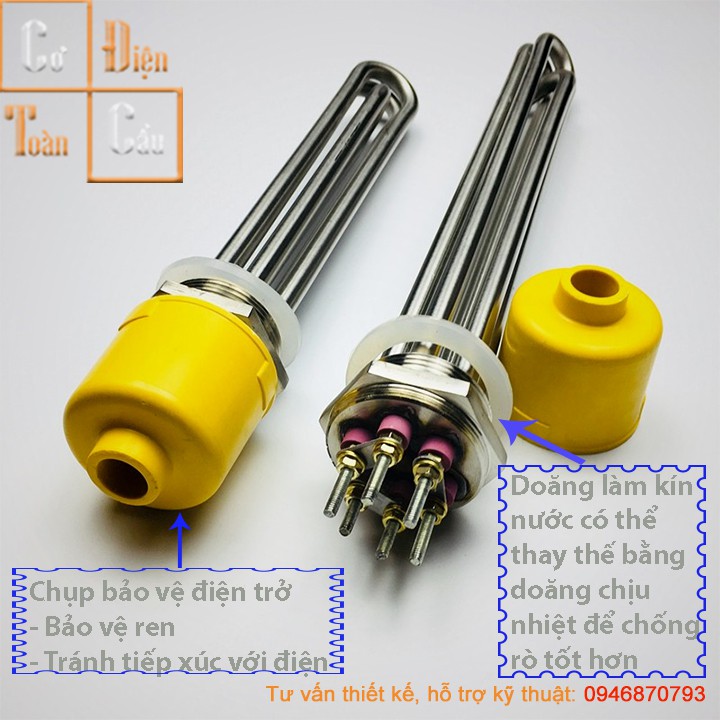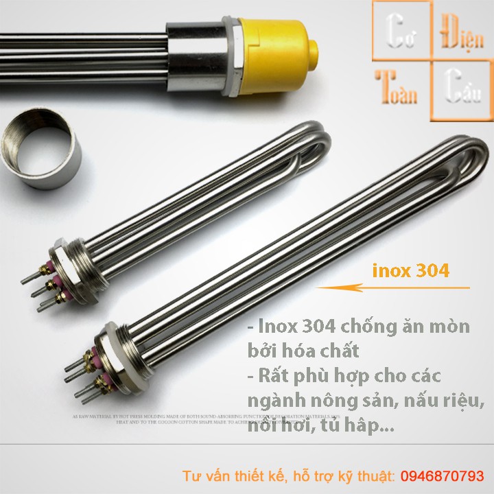 Giới thiệu [Hàng Loại 1] Điện Trở Cục Ren Φ36 mm Φ48 mm Φ59 mm Inox 304 Đun Nước, Đun Dầu, Nồi phở,đun riệu 220v 380v