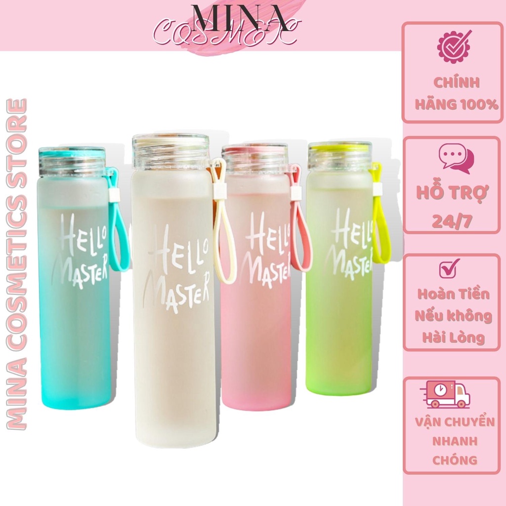 Giới thiệu [hàng loại 1_giá tốt nhất] Bình nước Hello master 450ml thuỷ tinh an toàn với sức khoẻ ( Sale1k )