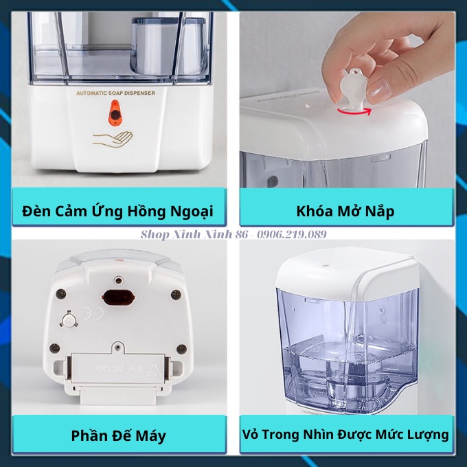Giới thiệu Hộp Đựng Nước Rửa Tay - Nước Rửa Bát - Cồn Sát Khuẩn Cảm Biến Tự Động Nhỏ Giọt Phun Sương 700ml
