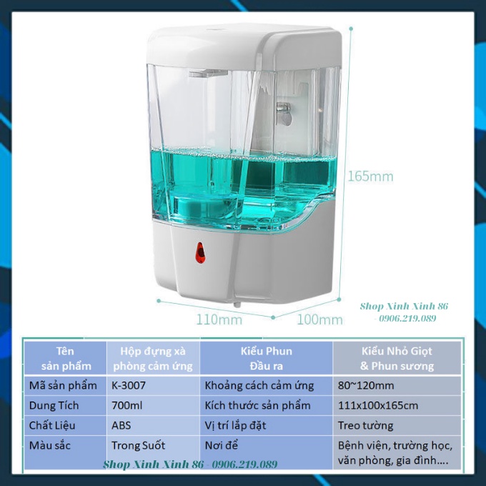 Hộp Đựng Nước Rửa Tay - Nước Rửa Bát - Cồn Sát Khuẩn Cảm Biến Tự Động Nhỏ Giọt Phun Sương 700mlBình thường khi cần lấy nước rửa tay hoặc nước rửa bát, cồn sát khuẩn ta phải dùng tay ấn trực tiếp vào vào vòi hoặc cầm lên khá bất tiện và dễ dàng phát sinh nhiễm khuẩn chéo, không an toàn trong quá trình sử dụng.
