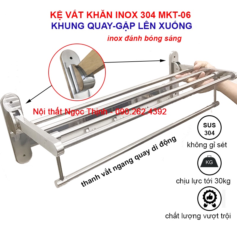 Giới thiệu [HÀNG LOẠI 1] Kệ treo khăn tắm GẬP LÊN XUỐNG MKT-06 inox304 cao cấp máng khăn tầng đa năng