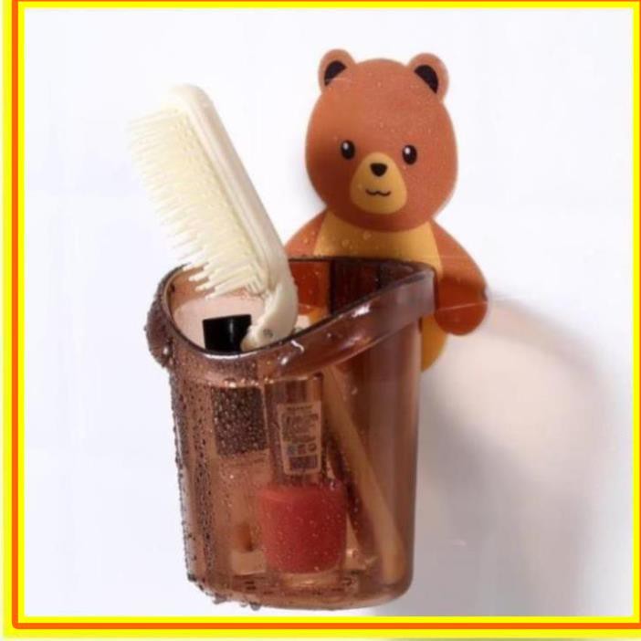 Hàng Loại 1 Ly cốc đựng bàn chải kem đánh răng dán tường hình gấu Siêu Dính K149