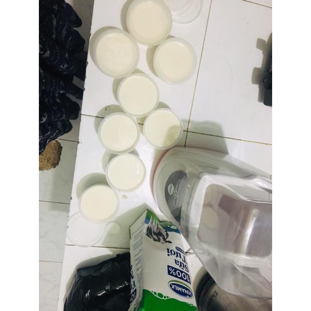 - Trộn đều lên, rồi bỏ hộp sữa tươi vào máy, tầm 7-10 tiếng