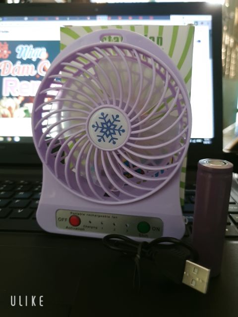 – Quạt được trang bị 1 pin sạc dung lượng 3.7V có thể hoạt động liên tục trong nhiều giờ liền, khi hết pin có thể sạc lại dễ dàng thông qua cổng USB của máy tính.