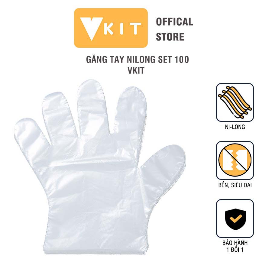 Hàng loại 1- Set 100 găng tay nilong sử dụng 1 lần siêu dai tiện lợi VKIT