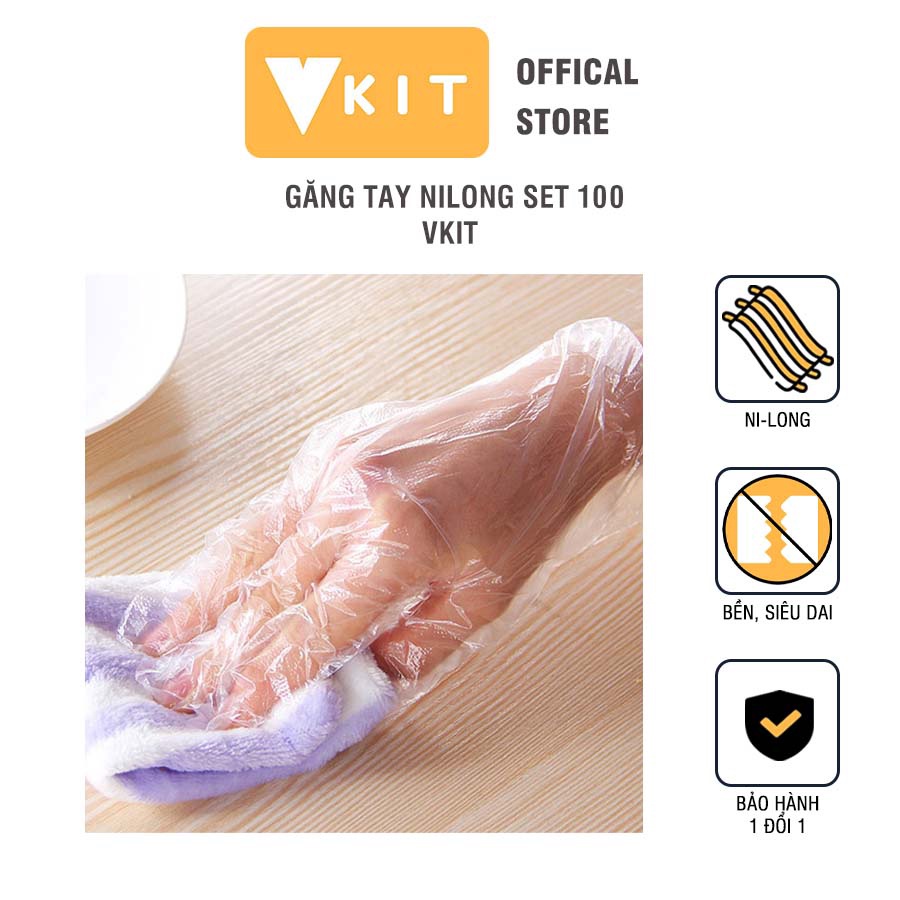 Tên sản phẩm: Hàng 1 loại- Set 100 găng tay nilong sử dụng 1 lần siêu dai tiện lợi VKIT