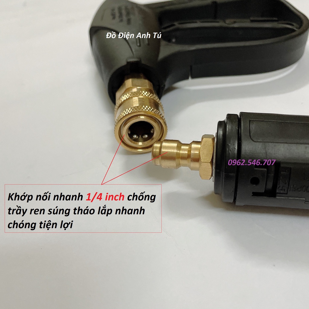 Súng ren nối nhanh 3/8 → Nối với dây rửa xe thông qua kép nối và đầu bi nối nhanh