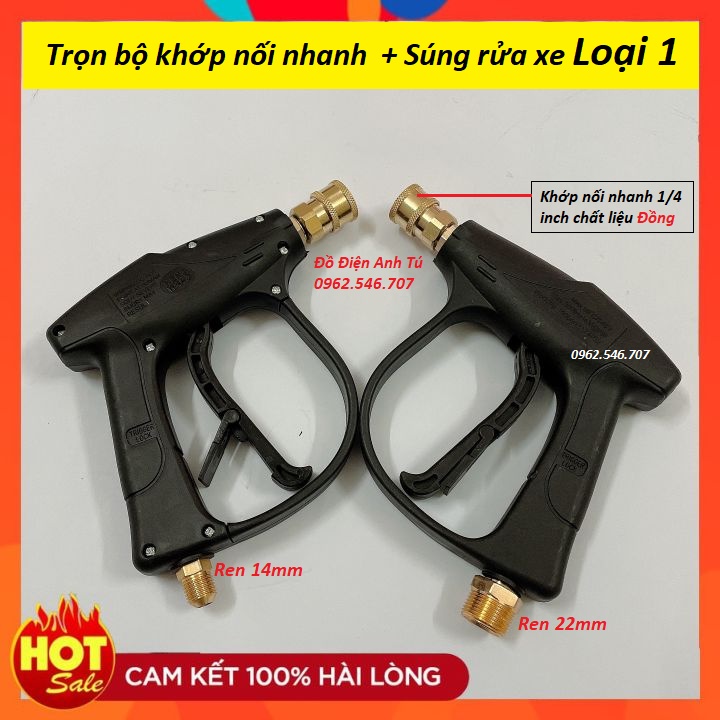(HÀNG LOẠI 1) Súng rửa xe - súng xịt rửa xe áp lực cao ngoài 22mm Và 14mm + kèm khớp nối nhanh 1/4 inch