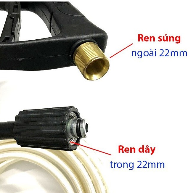 - Tên sản phẩm: súng rửa xe áp lực cao Ren ngoài 22mm và 14mm dùng cho máy xịt rửa