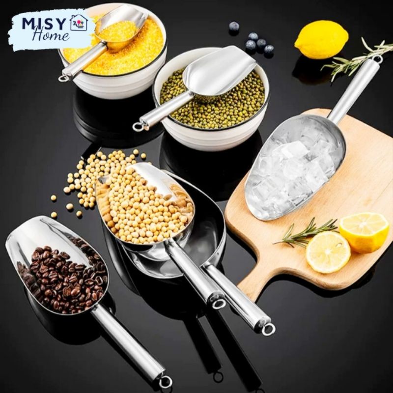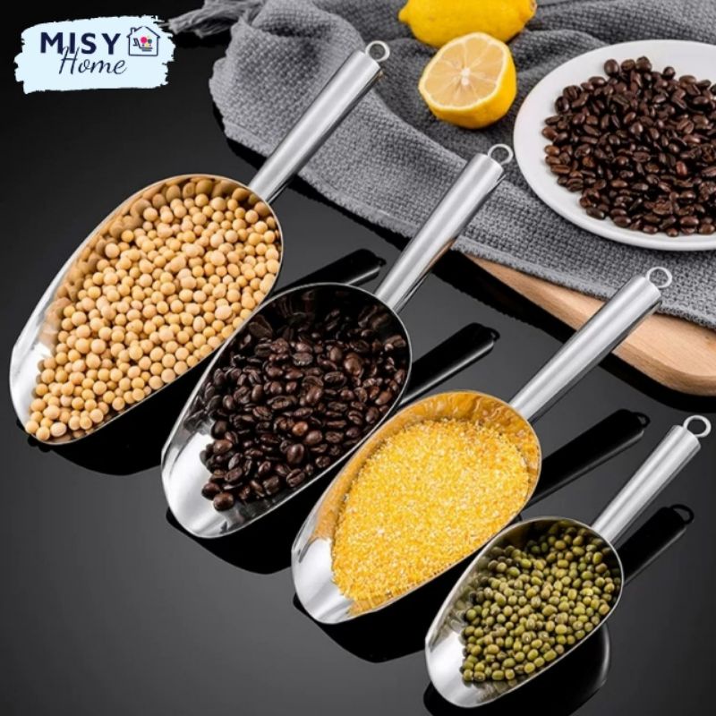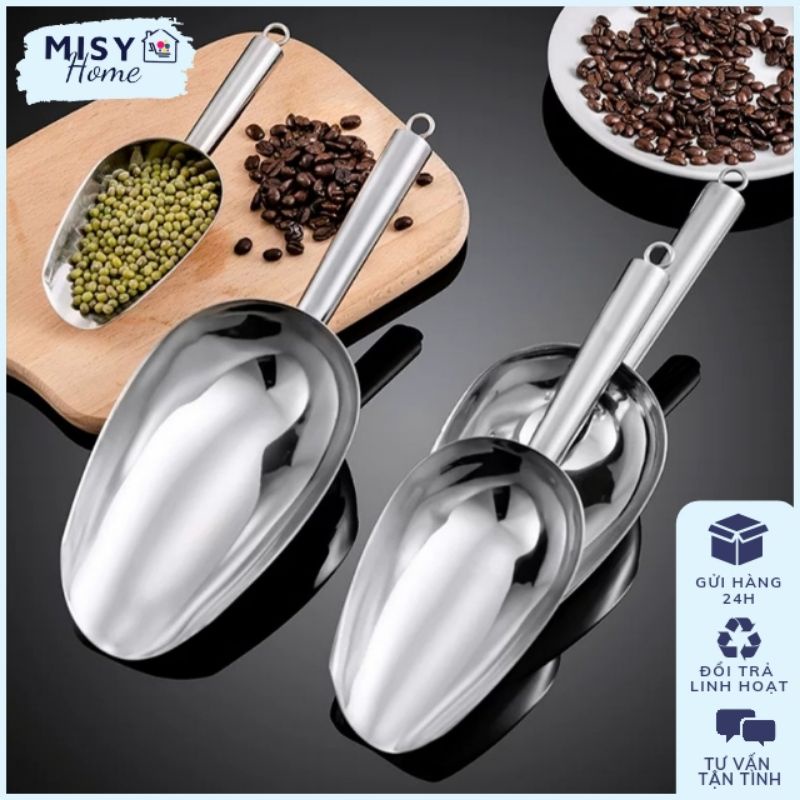 Giới thiệu [Hàng loại 1] Xúc đá inox 304 cao cấp xúc cà phê cafe, bột, gạo, ngũ cốc, đường đa năng... size nhỏ trung to Misy home