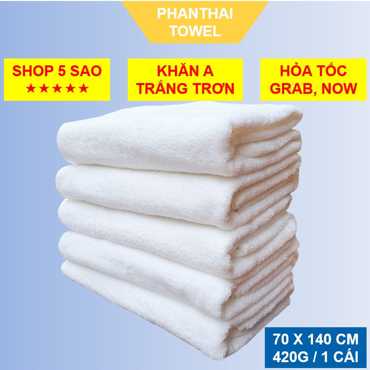 [Hàng loại A] Khăn bông tắm Trắng Trơn khách sạn khổ lớn 70x140cm (420g) #khantamtrang #khankhachsan